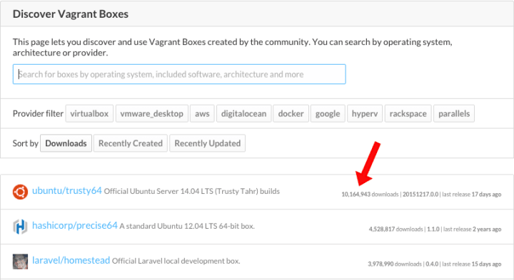 Today we’re proud to announce that the Ubuntu Vagrant images have passed the 10 million download mark. If you look at the download statistics, out of the top 10 Vagrant boxes in use, 8 out of 10 of them are Ubuntu or based on Ubuntu.