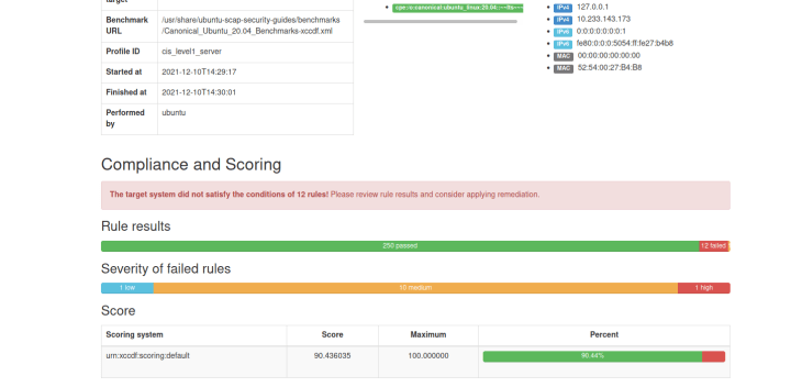 This will generate a report placed in /var/lib/usg with the results of the audit. The HTML report contains the list of rules that succeeded and failed, and looks like the following screenshot.