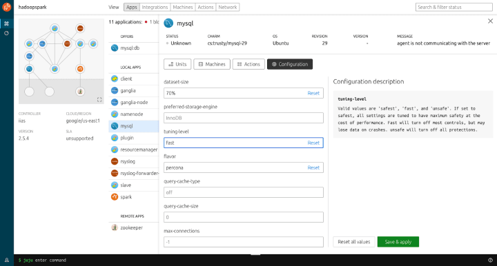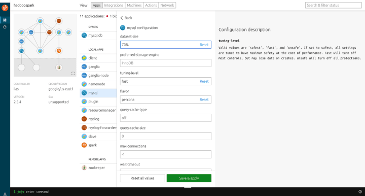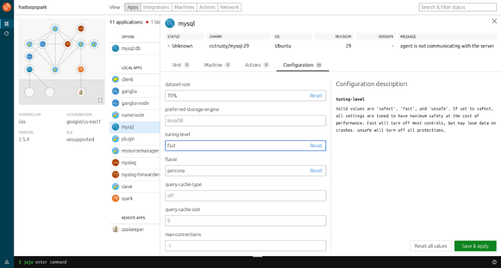 We have landed an important, if invisible, change in that the dashboard now communicates with Juju via our rewritten jujulib – the JavaScript library we use to talk to the Juju backend. This represented a large effort which will allow us to move and iterate more quickly in future.