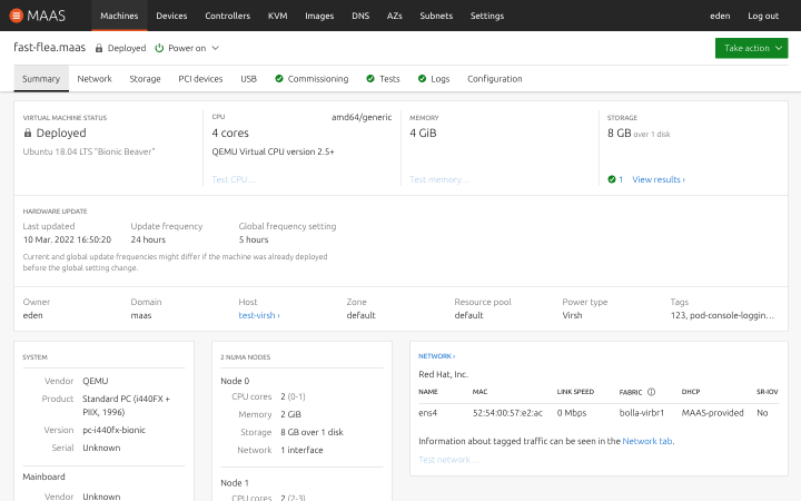 After the deployment, new update information will appear in the machine details: