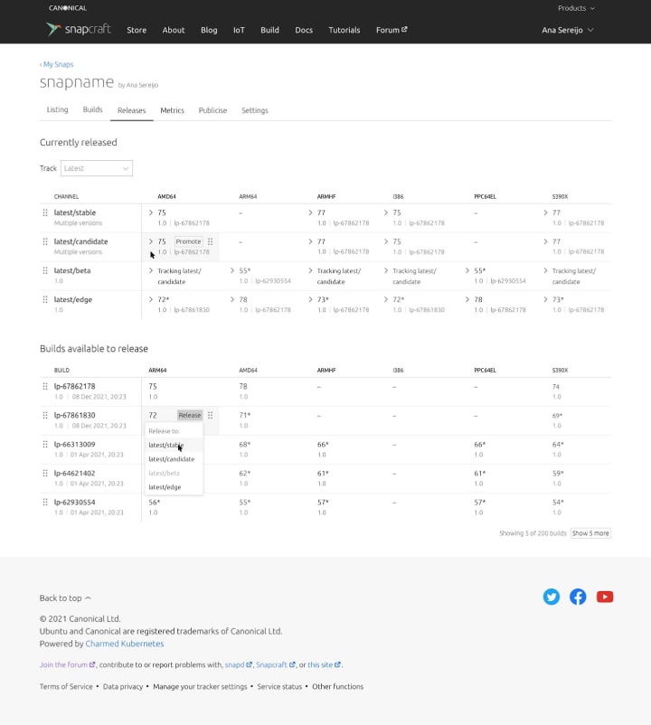 Based on user interviews’ feedback, we worked on improvements to the releases tab on snapcraft.io.