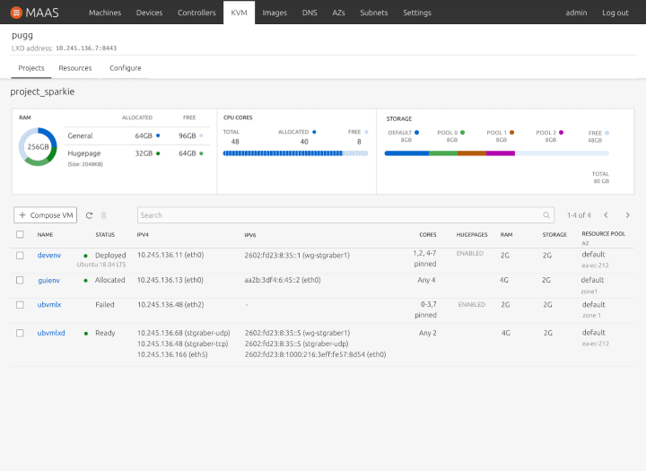 We are also working on another feature called MAAS as a LXD tenant. In this project, the purpose is to connect MAAS with a LXD server from a project level, where a user can create a new project, compose VMs, or delete VMs without interfering with the set up in LXD.