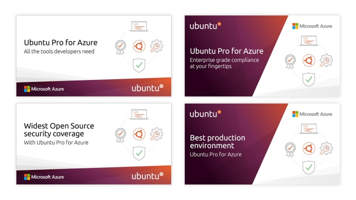 We developed a number of social banners to be used by the Marketing team to promote Ubuntu Pro on Azure, creating a few different design styles to avoid visual fatigue.