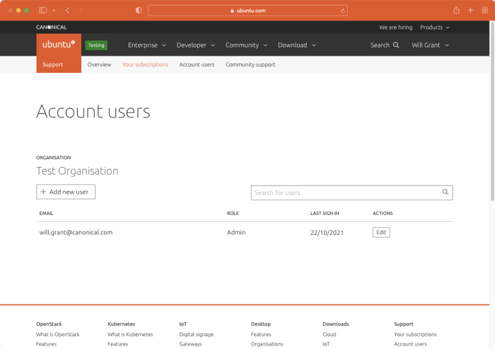 Up until now, Ubuntu Advantage accounts didn’t expose their multi-user features on the web. It’s been possible to build organisations, but it’s not been very clear or accessible for users.