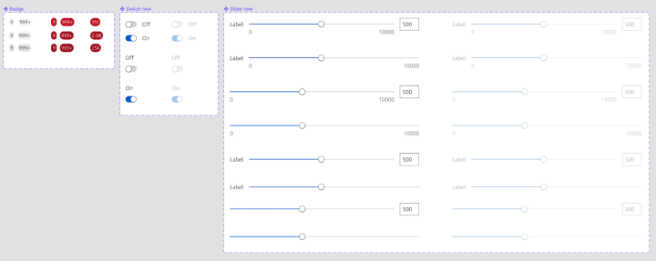 We’re continuing to add new components to our figma library. This iteration we added badges, and redesigned sliders and switches: