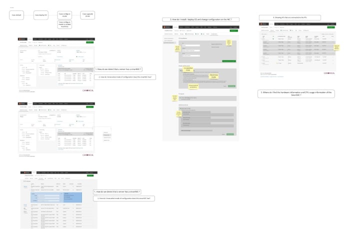 We’ve been through 2 design iterations on the conceptual level so far, and we are expecting a lot more iterations to come. Simpler problems that we can tackle right away are discoverability and setting up forms. Other than that we are still exploring different ways to represent hardware data from the smartNIC in ways that are useful for our users. So when a user owns a server with a smartNIC, they will be able to discover which mode it has been configured on, deploy the OS, and view hardware information from the VM and physical machine.