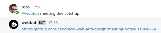 @webbot meeting [backend-catchup|dev-catchup|…]