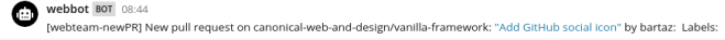 The web team works hard. We publish many pull requests an hour. Everyone of us should be able to jump in, to review it. To help publicize these requests to the team, every time a pull request is created webbot will notify the team in the channel.