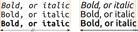 In a variable-width font, the letters ‘m’ and ‘w’ are much wider than the letters ‘i’ or ‘l’ leading to two problems. The wider characters must be squeezed to fit, and the narrow characters bulked-out to fill the space. Out of all of these, the Latin ‘i’ and ‘m’ have taken the most time, with many experiments run over several months to try and discern a solution (a compromise is going to be necessary somewhere).