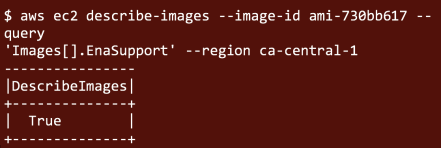 Any Ubuntu 16.04 LTS image brought up from EC2 Quickstart or AWS Marketplace on March 29th or later will be running on this AWS-tuned kernel. You can also query the EC2 API to confirm that these AMIs are ENA-enabled: