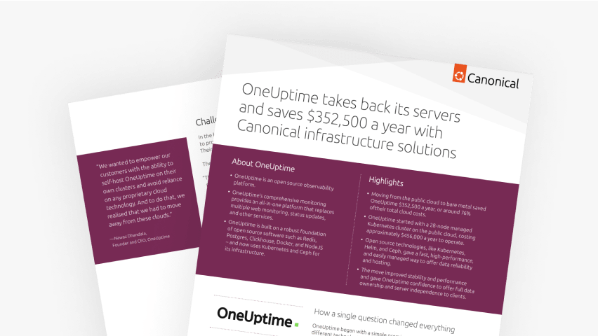Migrating to bare metal infrastructure using Canonical's open source technologies allowed monitoring services provider OneUptime to have greater control over its infrastructure and services – while saving over 76% of their cloud costs.