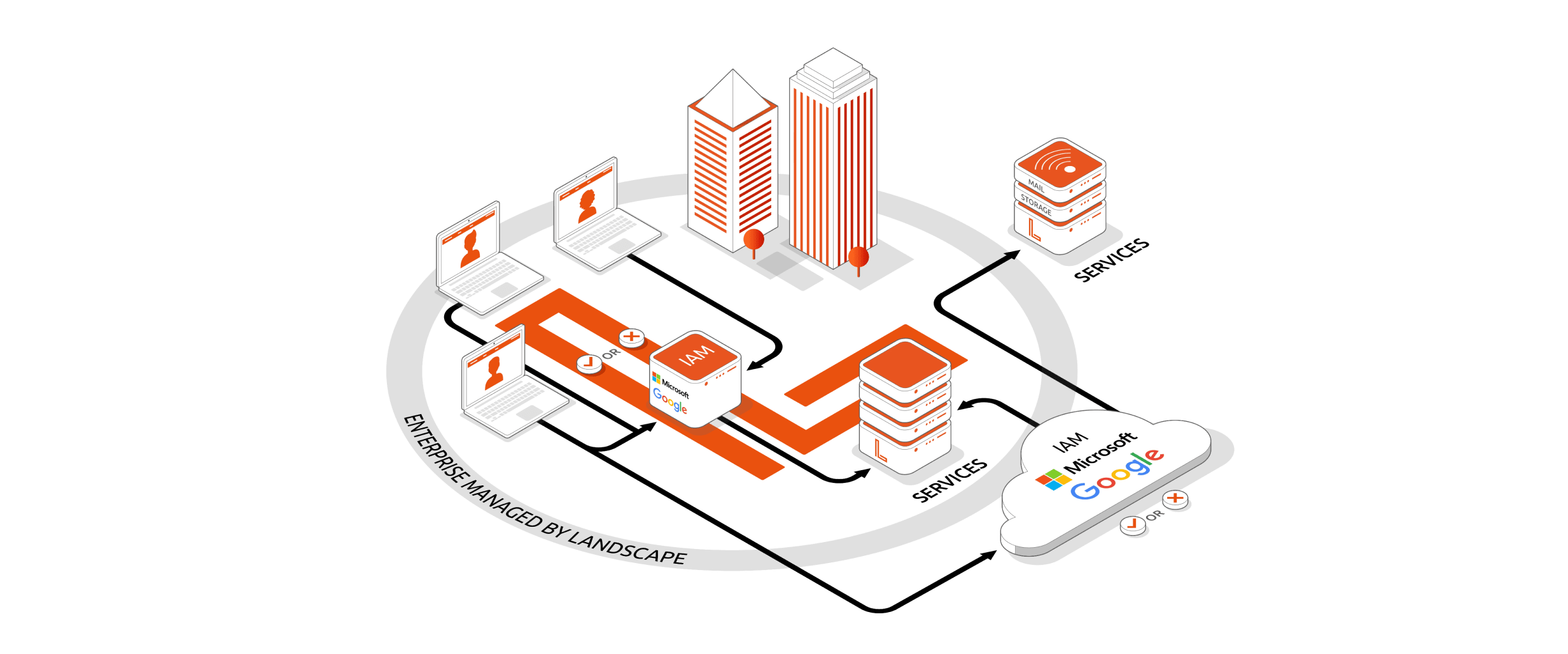 Landscape supports OpenID Connect (OIDC) to authenticate users, and integrates enterprise identity providers like Azure AD, Google, Okta, IBM, and more.